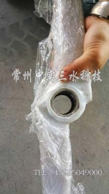 在材質的選擇方面,針對氯離子的因素,因為不銹鋼不適于耐受氯離子,我們采用碳鋼襯塑的設計,同時因為攪拌罐的入口小于平板槳的外徑,我們在結構設計方面將平板槳與攪拌軸采用螺紋連接的裝配式方案,連接處必須是純金屬外露的結構,此處我們就巧妙地使用了雙相不銹鋼(下圖)。